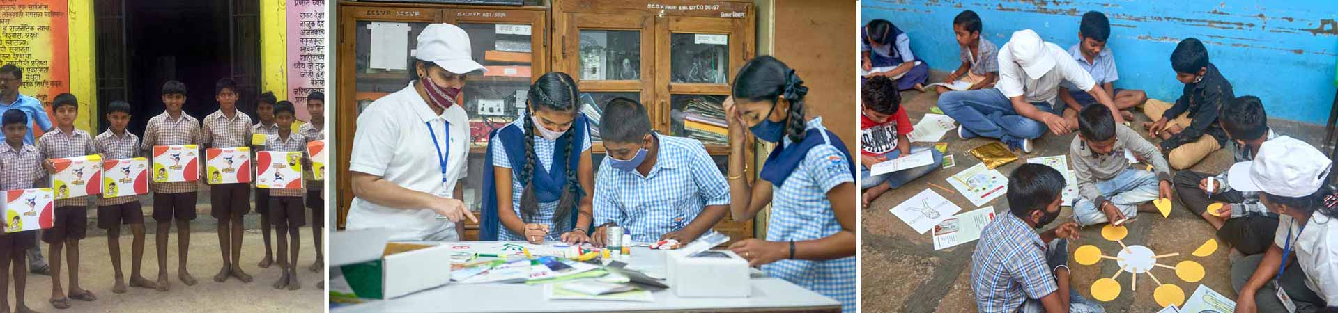 The kits distributed include subjects like Save Water, Cleanliness, Environment Conservation, Child Sexual Abuse etc.