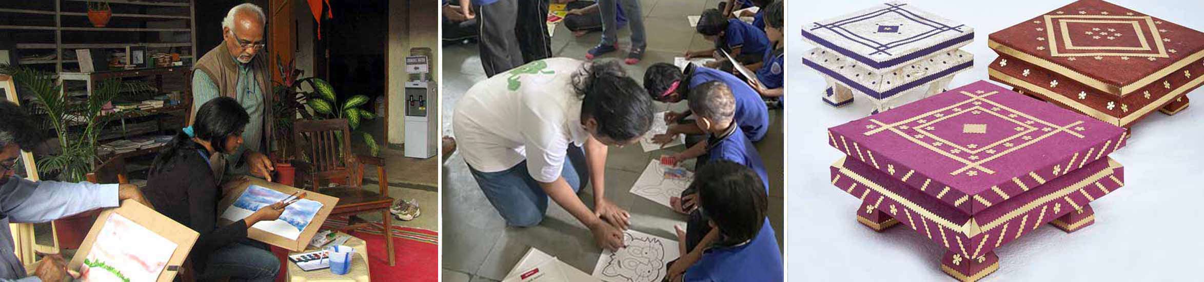 One of the main mission of our trust is to educate the students who are the future citizens of our country. Spreading awareness among them is very important as they will act responsibly and act as a messenger of change. Basic traditional education is given in the schools, whereas Sumbaran Foundation for Art & Culture spreads awareness through Art and Craft kits giving importance to Activity based learning.